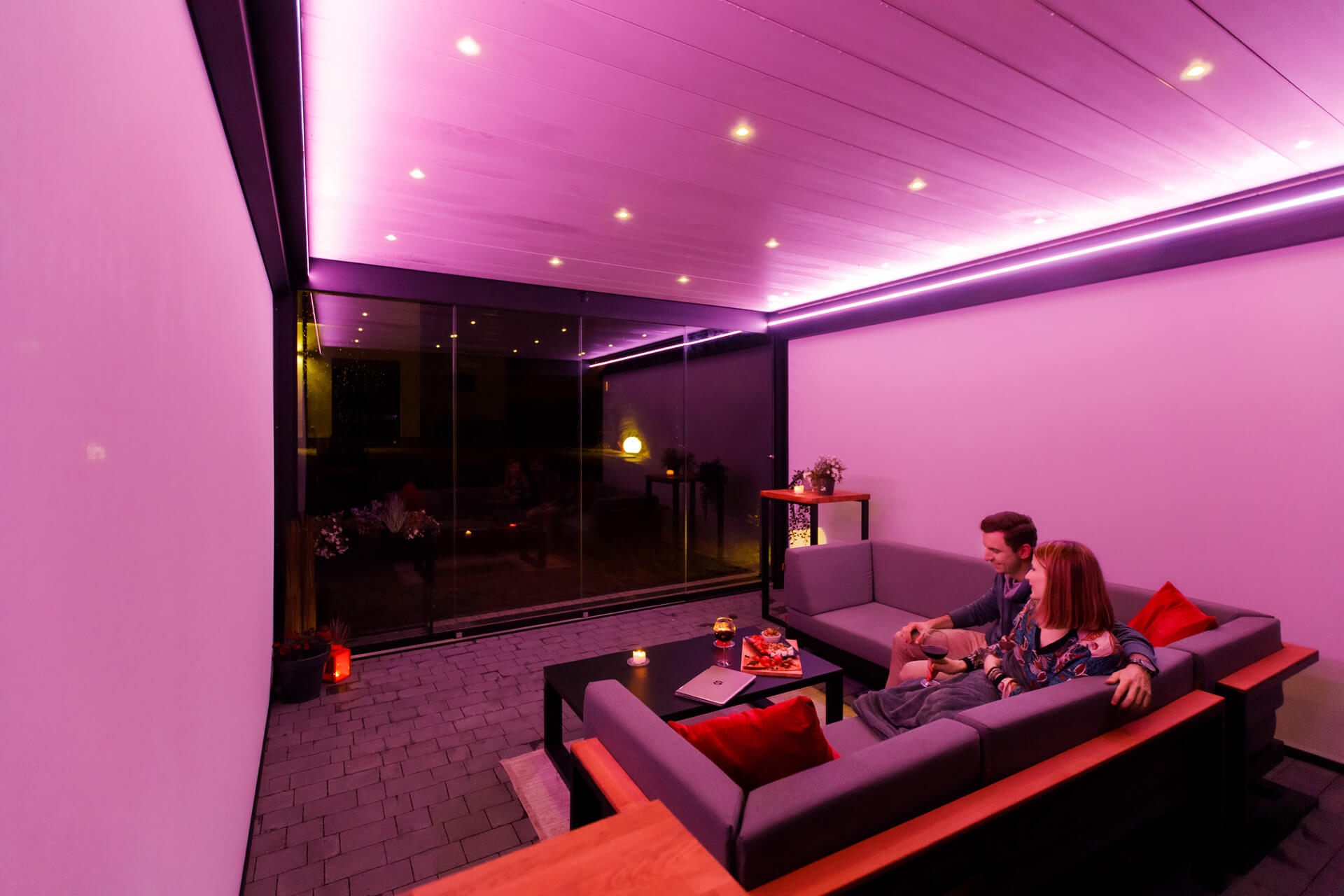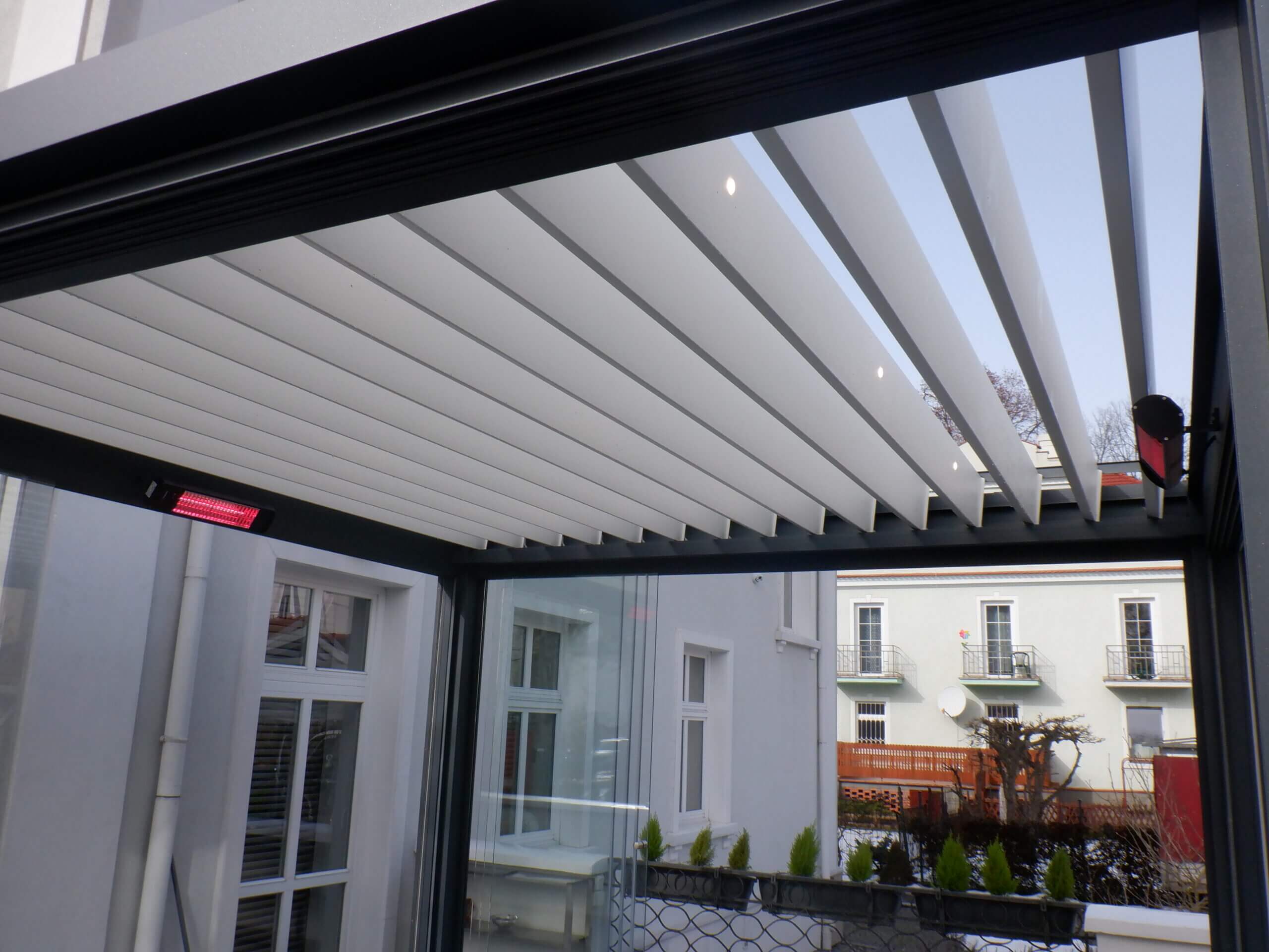 É un componente che sicuramente aggiungerà funzionalità ad ogni terrazza. Faretti LED o striscie LED di alta qualità sono lo strumento perfetto per creare un clima straordinario, in qualsiasi momento. L'illuminazione integrata offre possibilità illimitate. La luce emessa può avere una tonalità di bianco caldo di 3000K, bianco freddo o RGB. L'illuminazione a LED integrata con rompitratta o le lamelle può essere comodamente controllata dal telecomando. Grazie all'opzione di dimmerazione aggiuntiva, possiamo cambiare l'intensità della luce per creare un'atmosfera piacevole. Il cablaggio incorporato è esteticamente mascherato. La nostra illuminazione è progettata per soddisfare le ultime tendenze e si compone benissimo con qualsiasi costruzione.